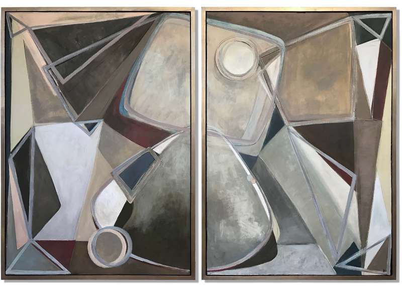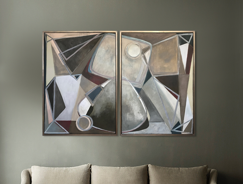 ‘Cashmere Diptych’ Gouache & Acrylic on Board in Gold Leaf and Bronze Finish Shadow Gap Tray Frame