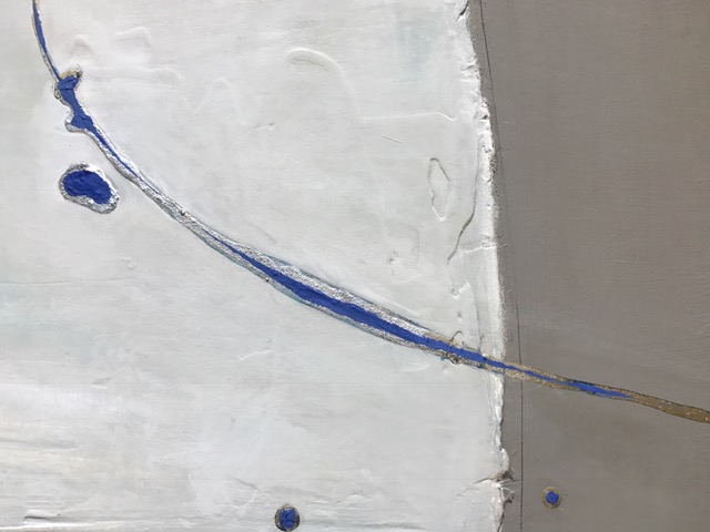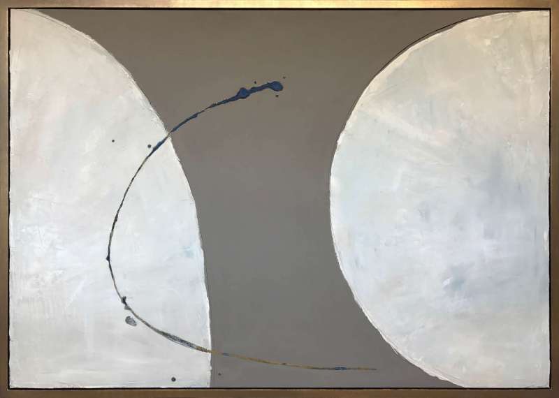'2 Moons‘ Oil Acrylic & Gesso on Board in Bronze/Gold Finish Shadow Gap Tray Frame